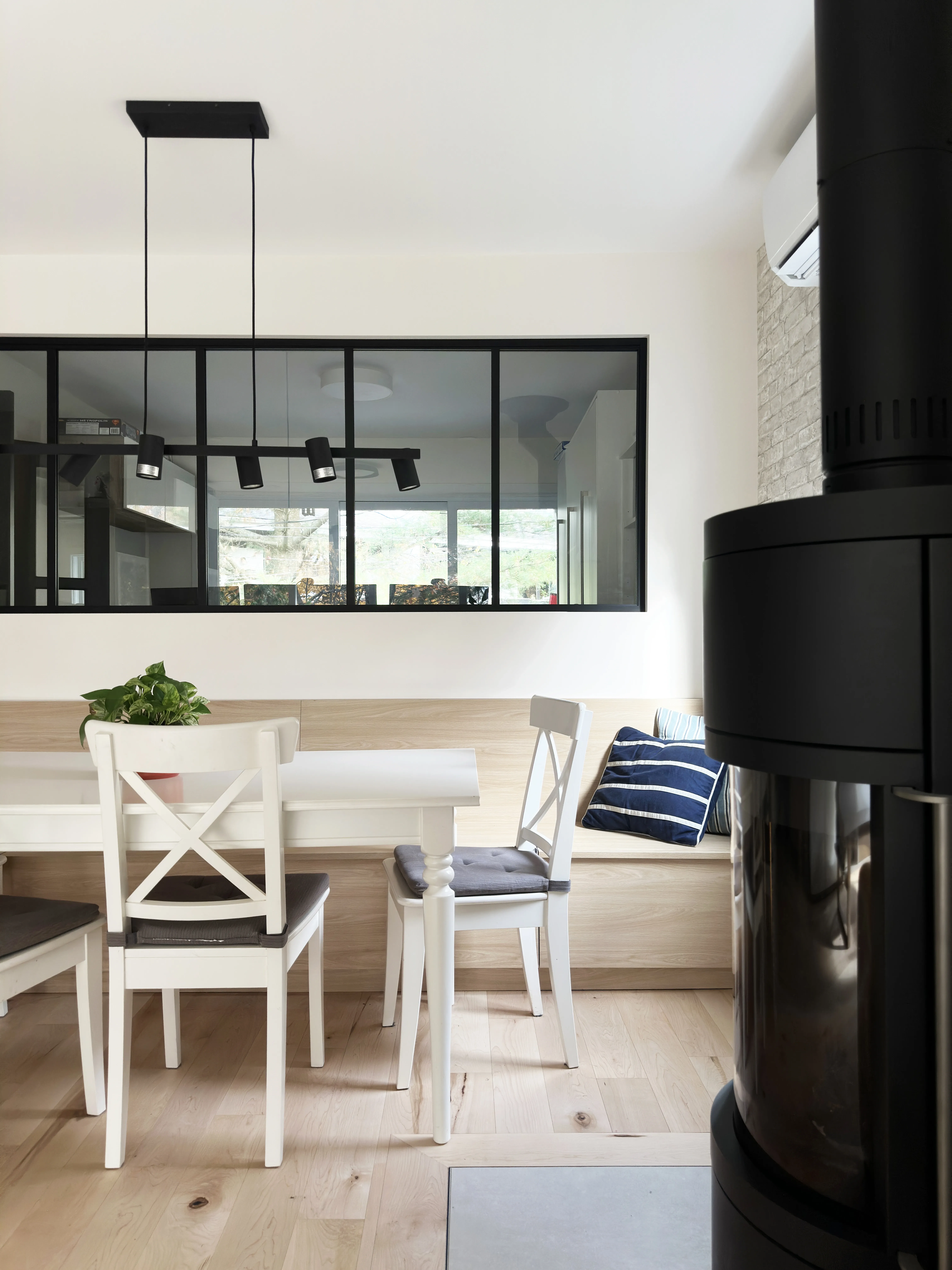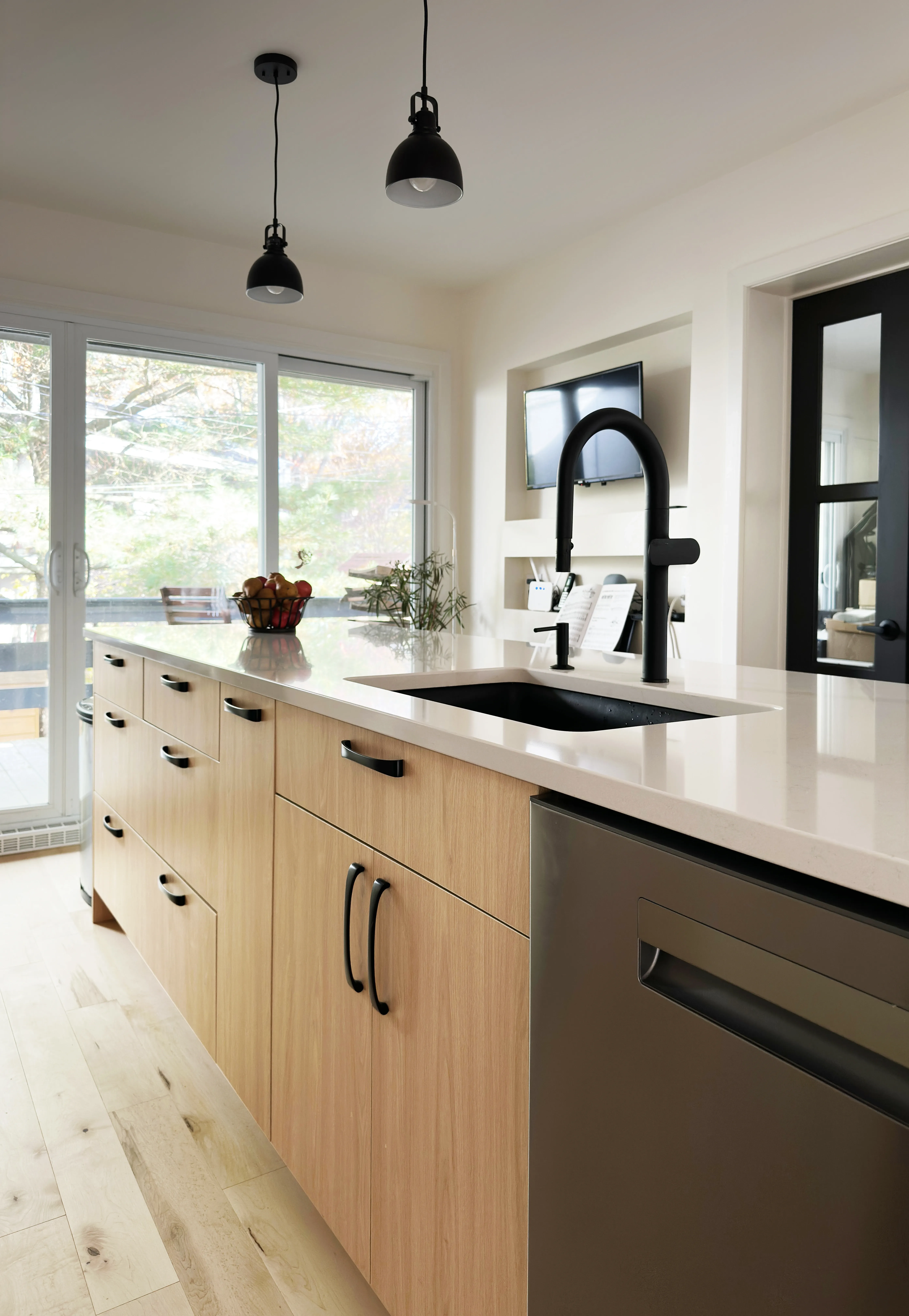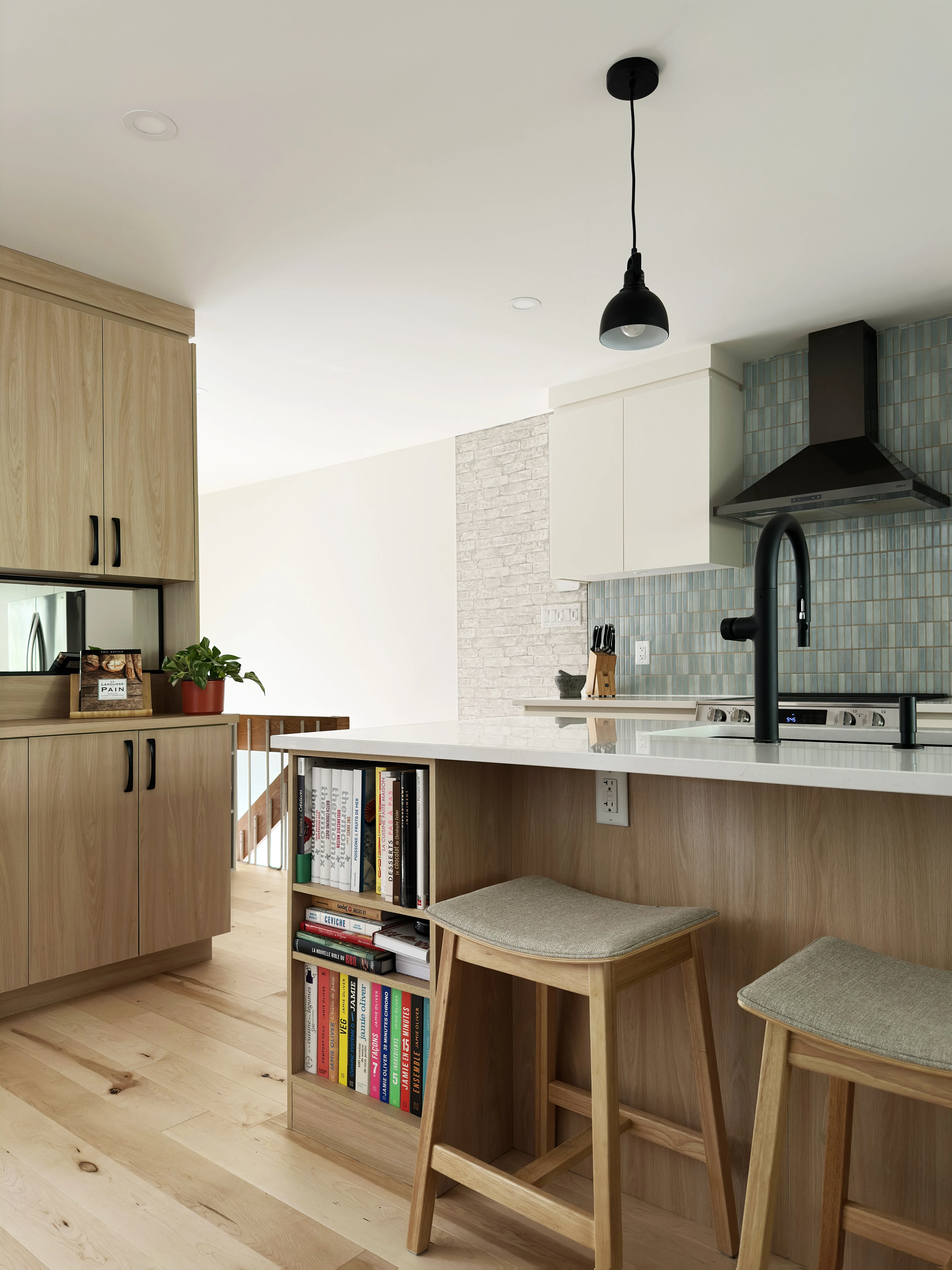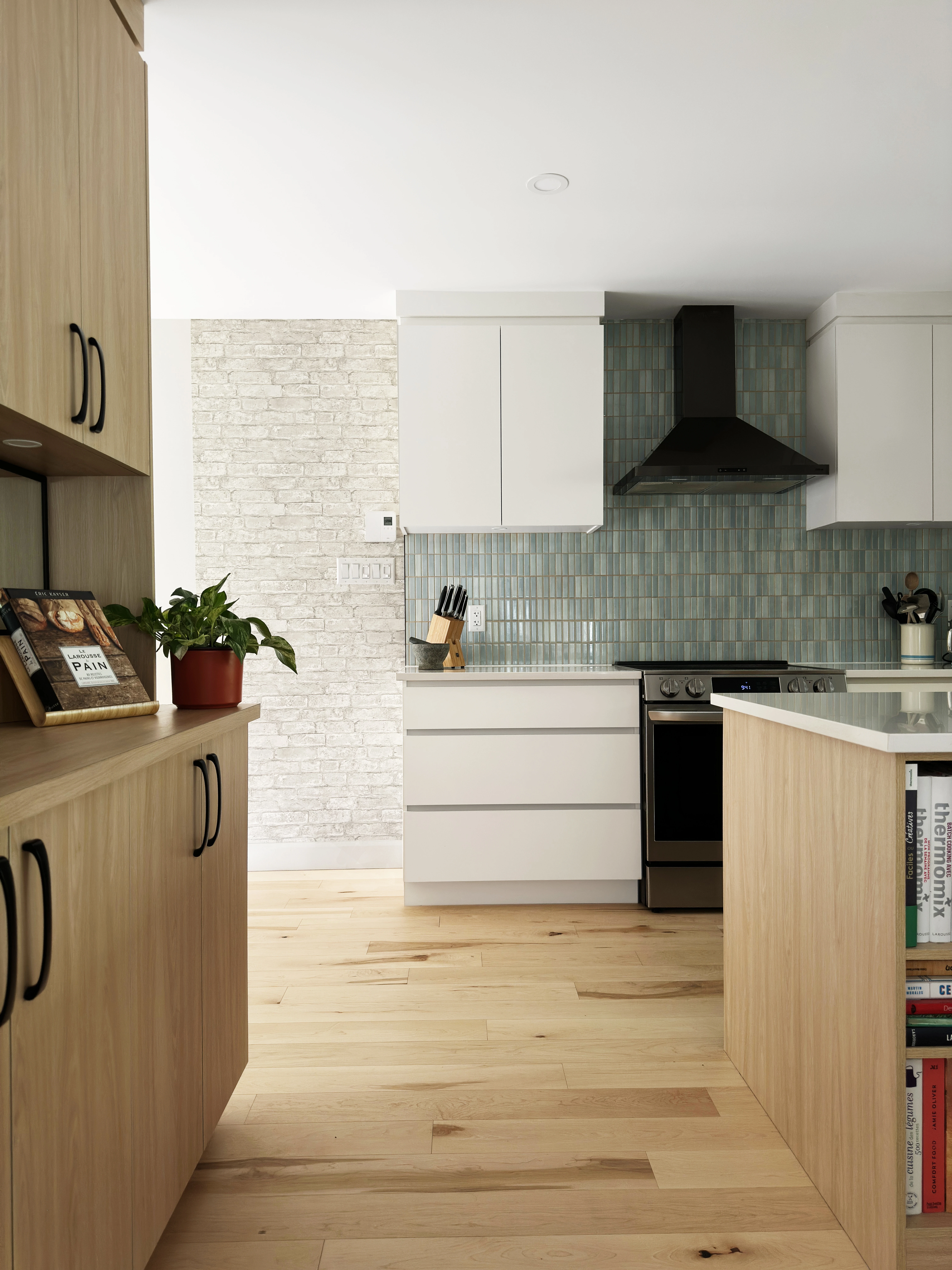 Nos clients se trouvaient à la croisée des chemins : rénover ou déménager. Ils ont confié à notre équipe la mission de réaménager complètement deux étages de leur maison. Nous avons réussi à leur montrer le potentiel caché de leur habitation et à les convaincre de rester. Chaque pied carré a été repensé pour accommoder cette famille de deux adultes et deux adolescents. L’ajout d’une troisième chambre au sous-sol et la subdivision des pièces de lavage/soins personnels facilitent désormais la cohabitation et favorisent l’intimité pour tous. Le style éclectique, mélangeant divers éléments et les goûts contrastés du couple, apporte une touche unique à leur nouvel espace de vie.